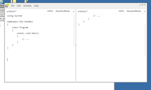 The main differences from notepad seem to be that the open documents were in `buffers’ ala Emacs, and you could split the view up horizontally or vertically. I never really use the split functionality in any of the other editors that I have, so this wasn’t really that interesting to me. The question I still had in my mind was, why on earth would Microsoft ship a simple text editor in an SDK that is purportedly for developing domain specific languages? Fortunately there is a small document in the SDK installation that gives you an overview. It turns out that the reason for its apparent simplicity is that it is intended to be easily extensible. Imagine that, a MS tool that is designed to be hackable.