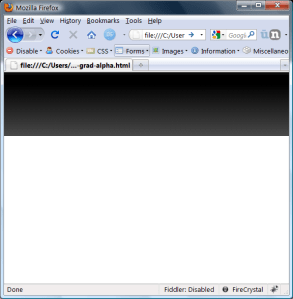 Unfortunately we need a comparatively large amount of css, but it still isn’t so bad. Notice that the main trick here is that the container serves as the positioning parent for the two elements that make up the gradient bar. The #background and #overlay elements are absolutely positioned with the same height and width so that they will occupy the same x and y positions.