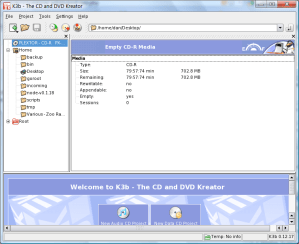 My scenario is as follows: I have a Dell SC40 server that hosts has some mp3s that I want to burn to CD. The server is headless — it has no monitor attached. My laptop does not have a CD burner, but the server does. The server is running the CentOS 5 GNU/Linux distrubution. The laptop is running 64-bit Windows Vista Ultimate. The CD burning software that I like to use under Linux is k3b.