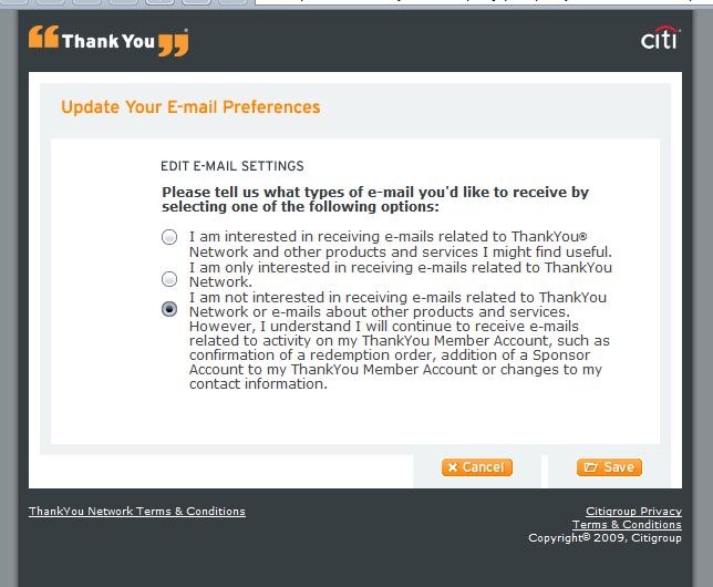 Forcing me to stop and think this way might be advantageous to Citigroup in that maybe I will be dissuaded from opting out, or opt to still receive certain emails. However, there may be a better way.