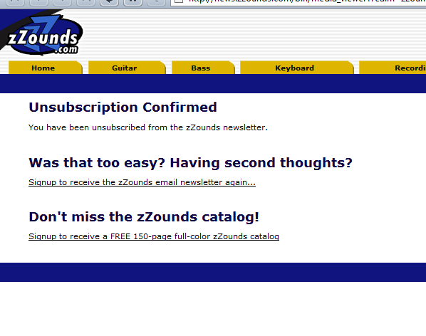 The next opt-out page that I visited was that of Zzounds, an online music retailer.