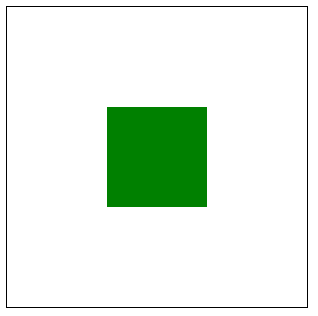 To start with, let’s create a green square centered inside of a black-bordered “viewport” using standard CSS positioning and nothing fancy: